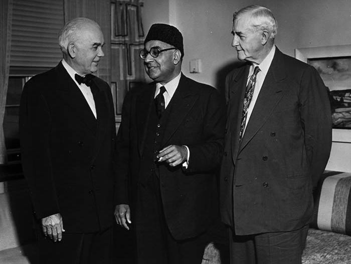 Houston Mayor Oscar F. Holcombe, Pakistani Prime Minister Ali Khan, & Houston Power Mogul Jesse Jones, 1950.