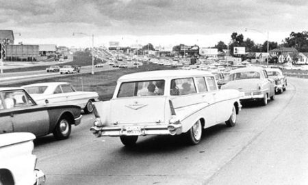 1947: Engineering begins on plans for new Gulf Freeway. The state’s  first freeway is sold to the public as a “super highway” that will solve all our problems of commuting between downtown and the suburbs.