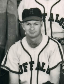 The guy I have in mind is the late Roy Broome (BR/TR) (5’11”, 160 lbs.), an eleven-season minor leaguer, mainly in the Cardinal system from 1940-42 and 1946-53. Broome hit pretty well as a minor leaguer, finishing with a .290 career batting average. He only hit 89 career home runs in 5,419 official times at bat and he managed only 2 long balls for the 1951 Buffs in his short, 41-game, 157-times at bat tour as a Buff hitter.
