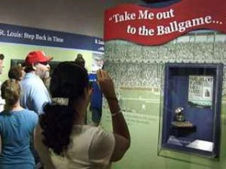I saw this exhibit last month while visiting a relative in St. Louis prior to my daughter’s graduation from Mizzou. I’ve been to St. Louis and the Arch Museum several times before and on the occasion of this rainy morning did so again. I stumbled on this exhibit and spent the better part of the morning there. Although small, it is extremely high quality. I noticed that a “Dr. Bill McCurdy” was cited for his contribution and emailed him about it later when he confirmed it was “our” Bill McCurdy. The state history museum in Forest Park (site of the World’s Fair) also has a nice but even smaller exhibit of St. Louis professional teams. Busch III is the third St. Louis venue for me, having attended games at Busch II and Sportsmen’s, where I saw my first game in 1961. I agree that the Cardinals fans are classy and support their team like no other. Cardinal Red in Busch is brighter than Dodger Blue at Chavez Ravine. And don’t miss the great photo of Denkinger blowing the call against the Royals featured prominently at Shannon’s Steak House. Denkinger has scrawled his name and “Safe!!!” across the clearly out runner.