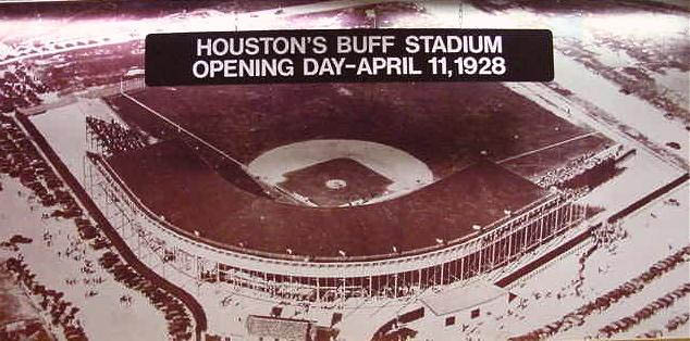 The new Buff Stadium of 1928 was great enough to serve as the home of our minor league Houston Buffaloes from the late 1920s all the way through the last picture show of 1961. Except for the World War II years (1943-45) in which the entire Texas League shutdown due to the talent drain from all the baseball players on combat duty, the Buffs played out the large balance of their minor league history at Buff Stadium from 1928 through 1961. Their previous home, from 1907 through 1927, had been at West End Park, off Smith on Andrews Street.