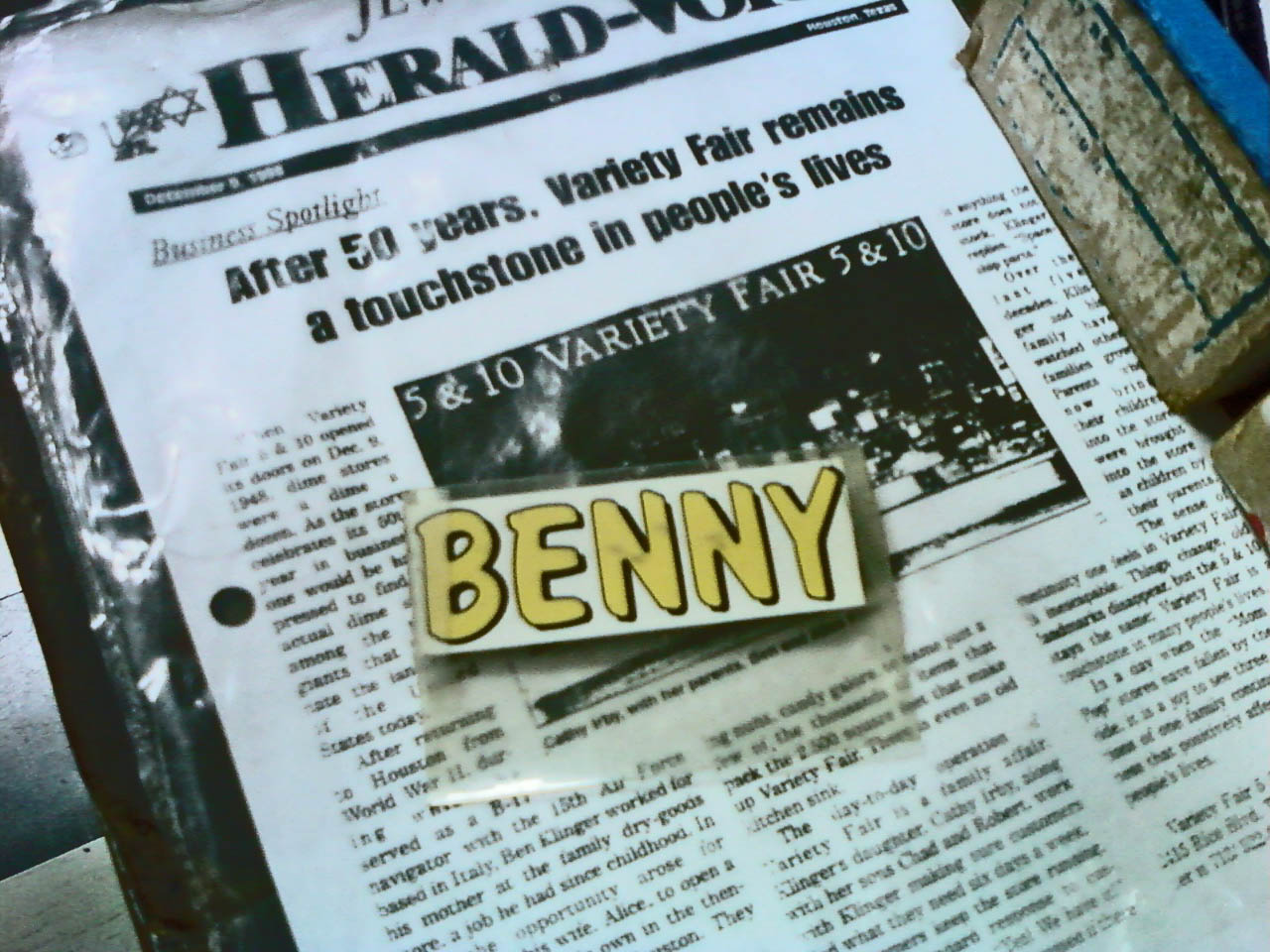 There are physical reminders of Benny throughout Variety Fair. Even if there were not, his ghost would still find you. My grown son Neal and I went to Variety Fair for our last trip there yesterday. We both left the store feeling better about everything. We also left with a few last chance souvenirs of the man and the store.