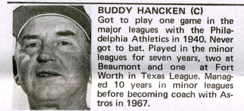 Also, great to see the picture of Buddy Hancken. They broke the mold when they made him. What a great guy and promoter for the Astros!