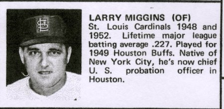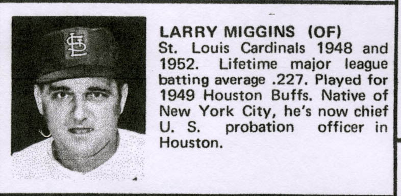 Thanks to Larry Joe Miggins, the son of former Buff and Cardinal Larry Miggins, I received this wonderful material on the All Star Games they used to play in the Astrodome during the reign of Judge Roy Hofheinz as Guiding Light of the Houston Astros. The Judge treated his invitees in first class order, honoring the old Buffs equivalently to all those national Hall of Famers during the short time they all convened in the Astrodome for a little fun on the diamond for a few fun innings of recreated greatness.