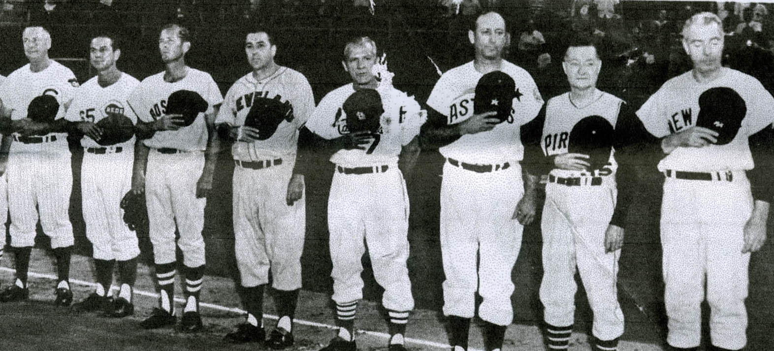 I’m sorry the above group line makes it so hard to recognize all the great stars that suited up for the 1968 game, so allow me to coast-to-coast their identities from left to tight in slightly larger type. Right here in Houston in 1968, we had Bobby Bragan, Bill Dickey, Allie Reynolds, Ewell Blackwell, Monty Stratton, Satchel Paige, Bob Feller, Johnny Mize, Solly Hemus, Stan Hack, Grady Hatton, Pete Runnels, Lou Boudreau, Ducky Medwick, Harry Walker, Lloyd Waner, and Joe DiMaggio.