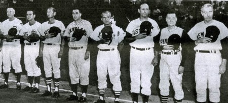 Right Side: Stan Hack, Grady Hatton, Pete Runnels, Lou Boudreau, Ducky Medwick, Harry Walker, Lloyd Waner, & Joe DiMagggio.