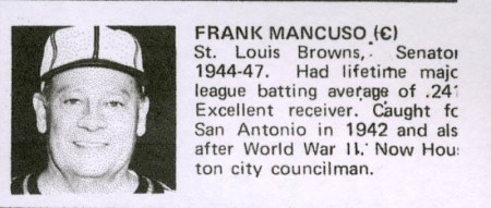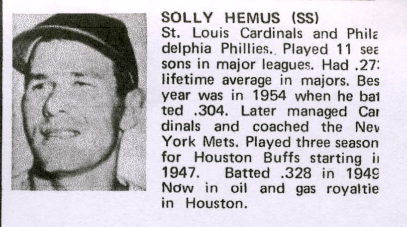 What a great party that must have been for all those wonderful ballplayers of the greatest generation. I feel privileged to have known and been close friends with a number of the men on the Houston Old- Timers roster – and I wouldn’t trade the time I’ve spent with men like Jerry Witte, Red Munger, Larry Miggins, Frank Mancuso, Solly Hemus, and Buddy Hancken for anything in the world.