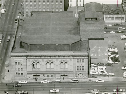 The above photo is facing north. The tall building at the top is where most guests stayed, if they played the City Auditorium. It’s the Lancaster Hotel now. It was called the City Auditorium Hotel back then.
