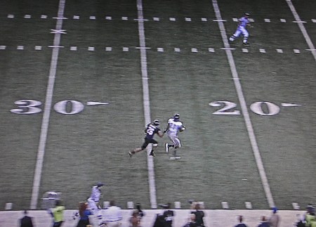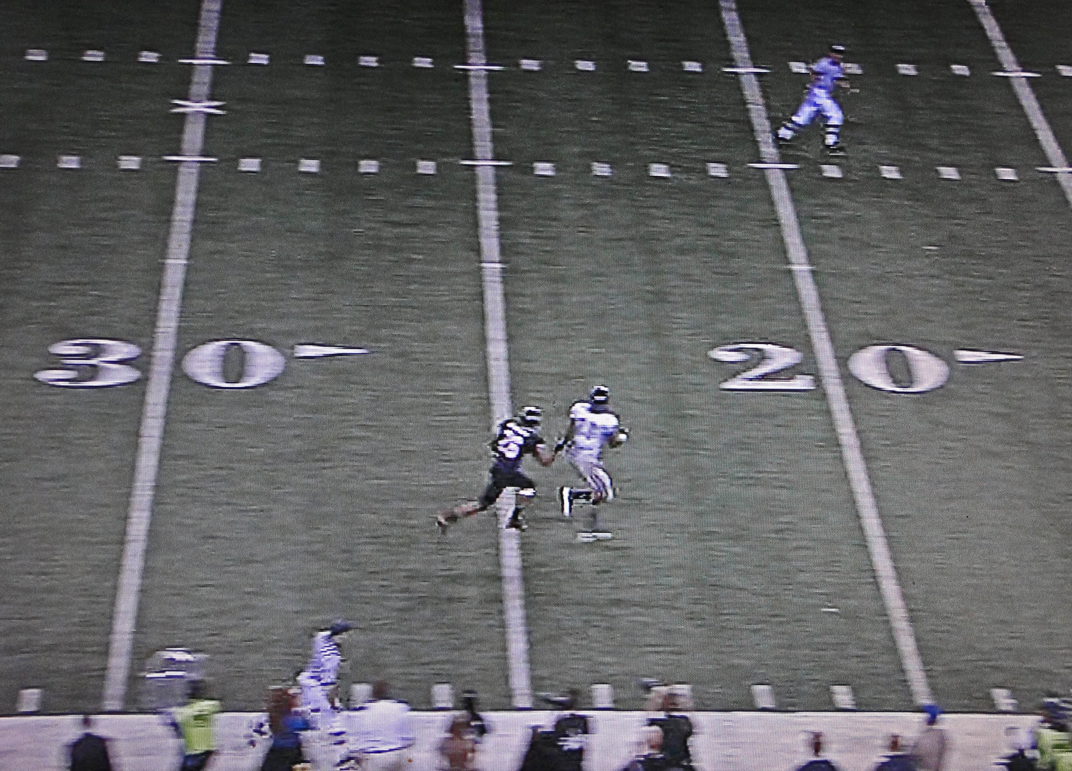 Above Photo: Here’s a picture of Fox’s live coverage during the precious seconds that the sleeper play is unfolding live. Fox makes up for the brain-freeze with ample opportunities to see the trick again on replay, but even though that’s cool, it still isn’t the same as seeing something in the moment it actually unfolds.