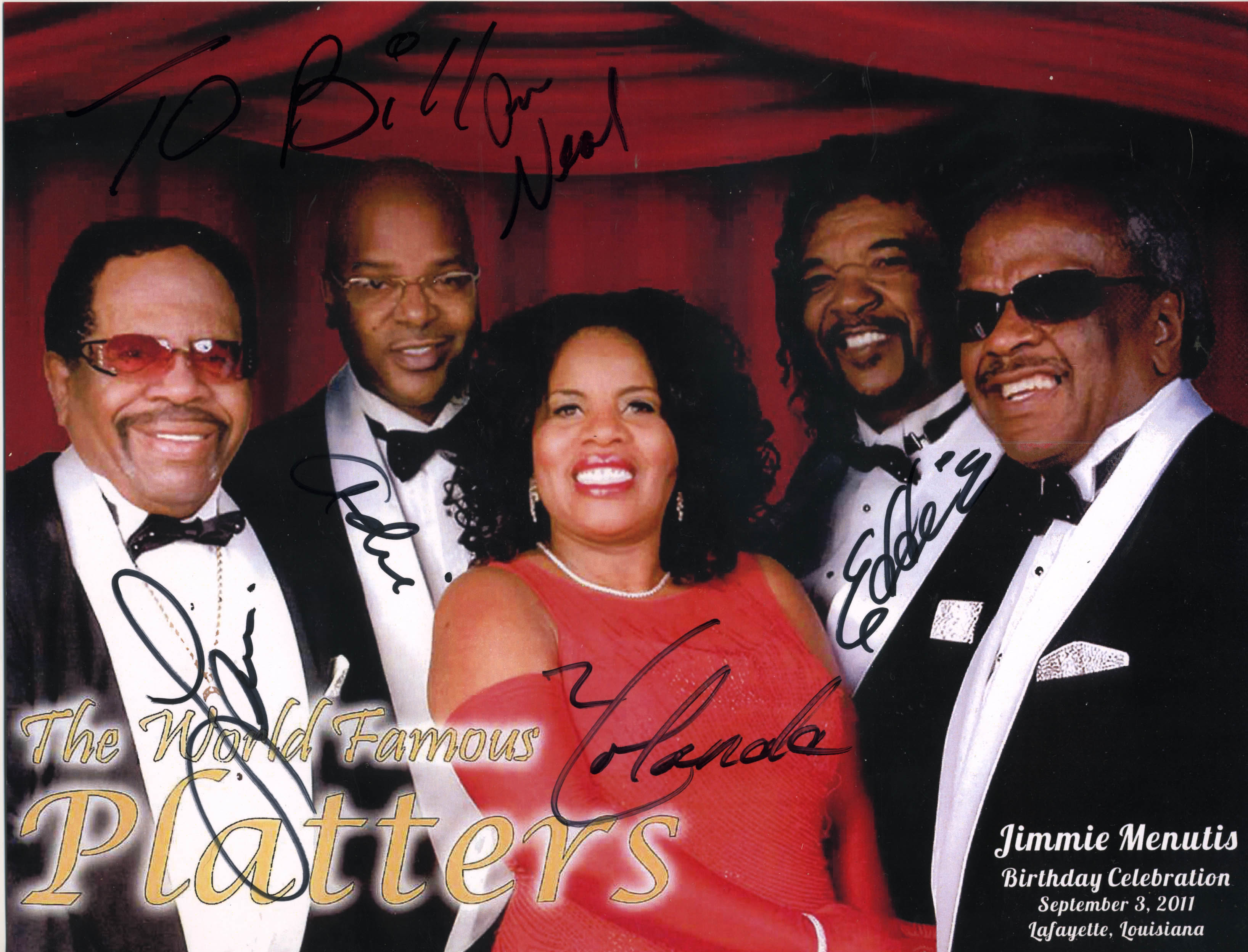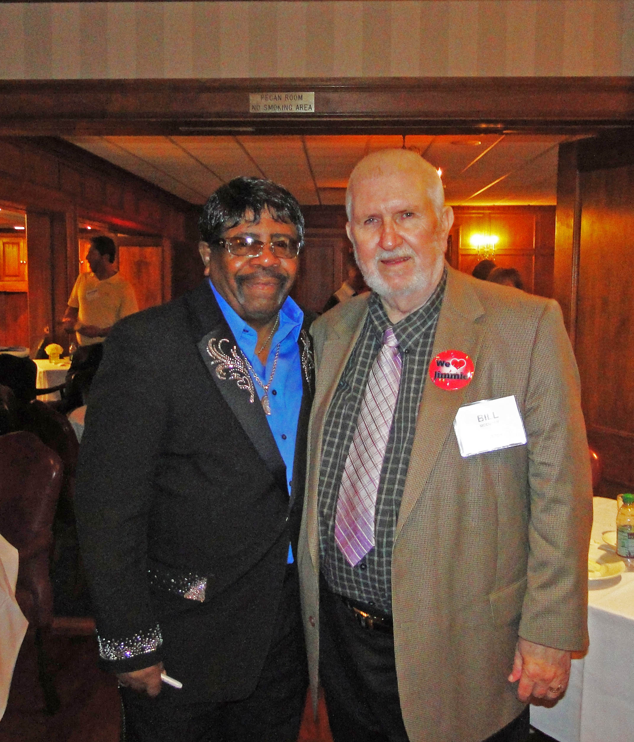 As Master of Ceremonies for the evening, I was far too busy working the pace of things to gather names and facts for a pure coverage of the party as an event, but some things happened to deepen my appreciation for my already positive feelings about Jimmie Menutis. Please remember that I’ve known Jimmie Menutis (with the “y” spelling of his first name) for over a half century, but that I only met him in person for the first time last Friday night, when my son Neal and I arrived in Lafayette early enough to take in a public performance by the Platters with the Menutises.