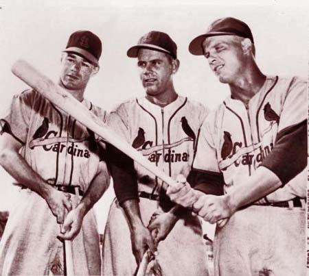 Early 1950s: Former Houston Buff and Cardinal prospect Russell Rac (Center) with Don Blasingame (Left) and Rip Repulski (Right). Rac is the only one of the three who saw no major league playing time.