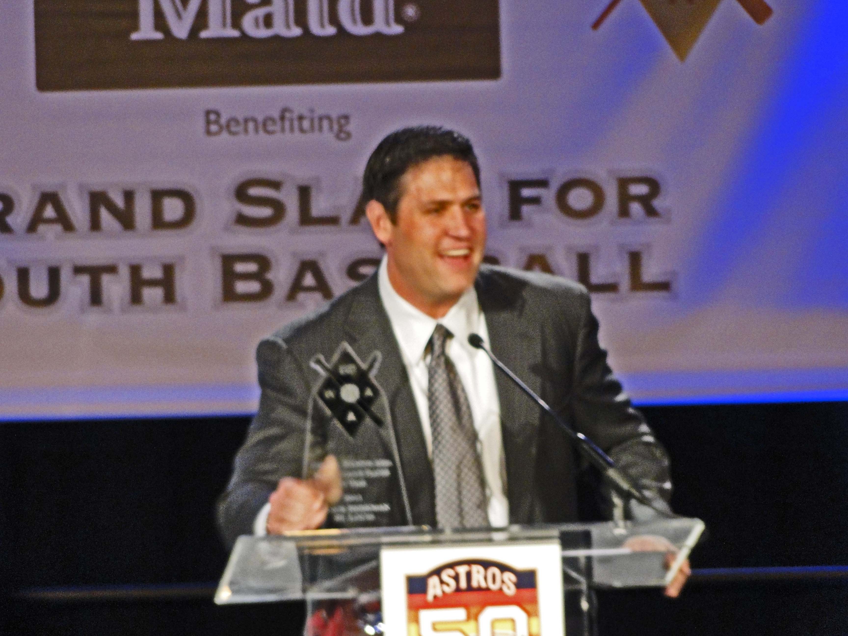 Lance Berkman accepting his award as the Houston Area Major League Player of the Year on Friday Night in Houston.