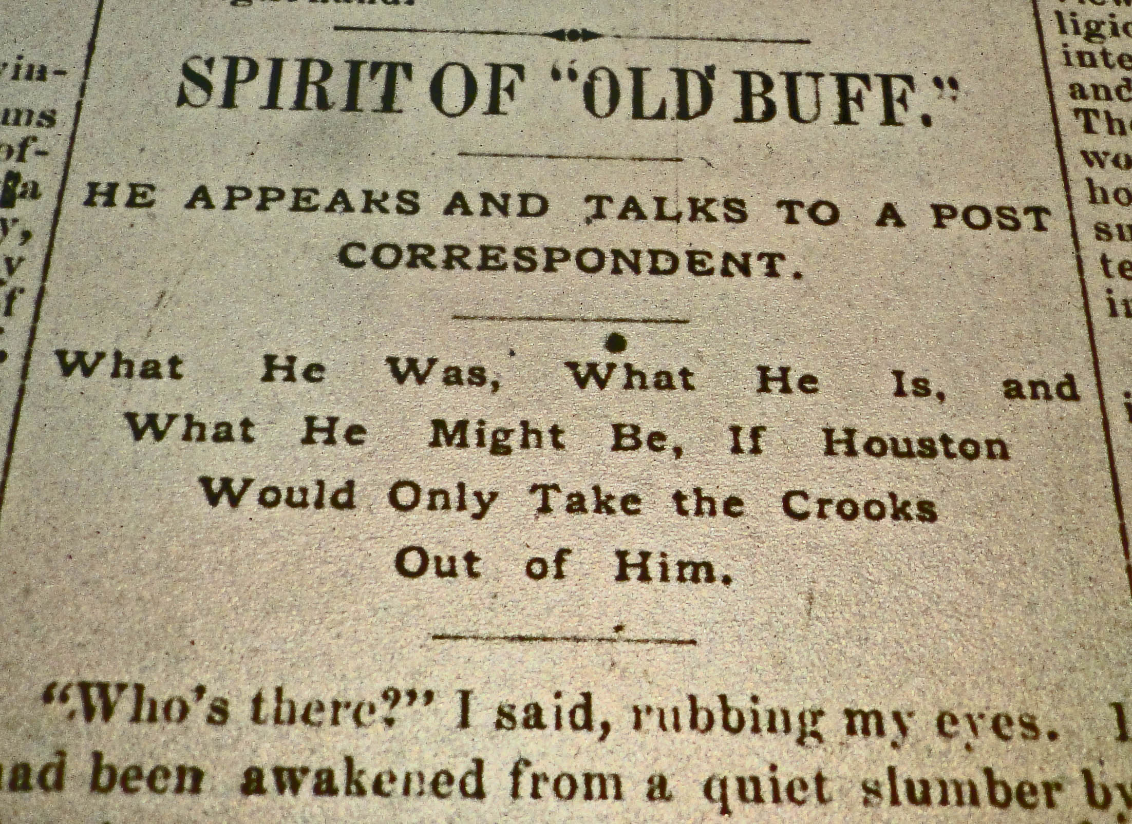 Early last Tuesday morning, this past one, the one going forward into Tuesday, May 1st, in the wee small hours, no less, I awoke from a most amazing slumber vision at about 3:30 AM. I had dreamed I finally made a successful trip back in time to Houston of the late 19th century. To be more precise, the date was October 25, 1887. I had been out there a lot lately in reality concordance with our 21st century time and space zone, but now, in the dream, at least, I was in this other place.
