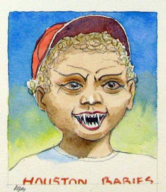 This is the first baby Zombie to make the Houston team ,Has a part in a movie currently playing in Houston, Unfortunately he was removed from the team this week. Ricky, a starting pitcher was caught using a red liquid on the baseball , made the ball do a figure 8 before reaching the batter,