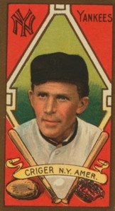 Lou Criger had a 16-year big league career as a catcher for the Cleveland Spiders (1896-98), St. Louis Cardinals (1899-1900), Boston Red Sox (1901-08), St. louis Browns (1909, 1912), and New York Yankees (1910). He batted only .221 for his career, never getting more than 22 extra base hits is a single season.