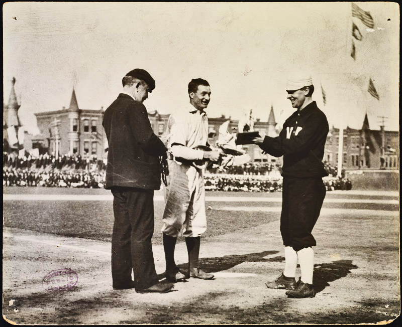 John McGraw (in black) gets ready for his Giants to square off against the Athletics in Game One of the 1905 World Series. Muggsey already had $400 in even money down on his Giants.