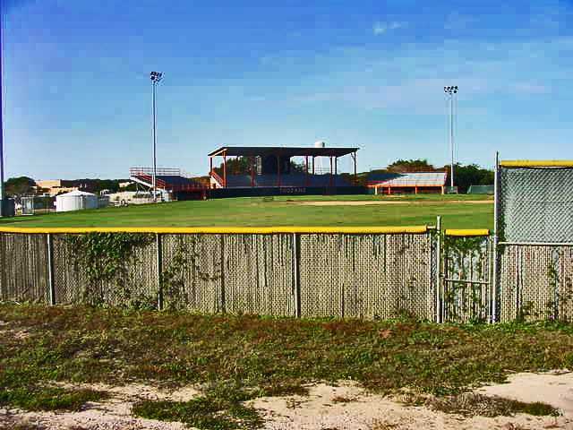Beeville’s last reprise in professional baseball came a half century later as a member of the independent Gulf States (1976) and Gulf Coast League (1977). The club was known as the Bees in 1976 and I’m fairly certain they used that same moniker in 1977. They didn’t win anything or produce any future stars, but they seemed to be holding their own when both leagues fell apart serially due to payroll shortages in some of the other cities. Beeville may have had their own problems too since both of these efforts were pretty much operating on a shoe string. The club used Joe Hunter Field on the campus of Coastal Bend College (then known as Bee County College) for their home games. It’s nice playing field, but the stands probably don’t have room for more than a thousand fans.