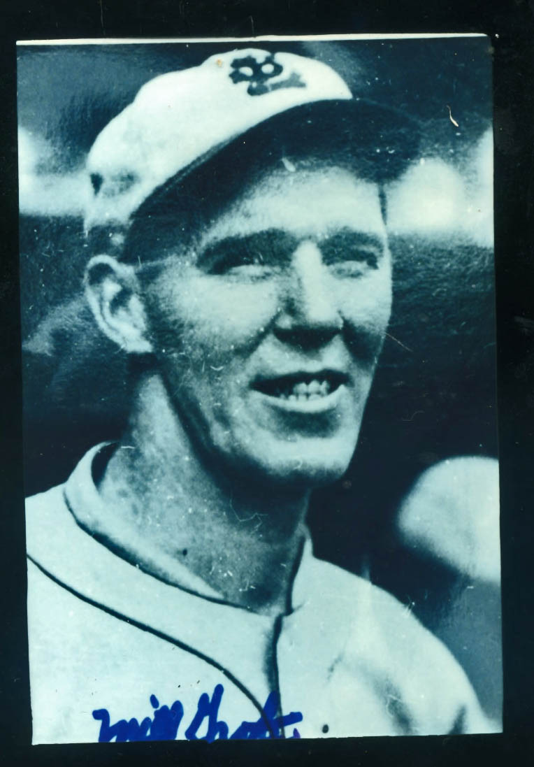 It was a small box wrapped in brown paper, addressed to me from Milt Gaston, and all in this large all over the place blue-ink handwriting, I side the box, Milt had signed the ball I sent him and also had enclosed an autographed signed picture of himself, The ball is now in secure storage. The player photo shown here s a copy of the one Milt sent to me. The original is in storage with the ball.
