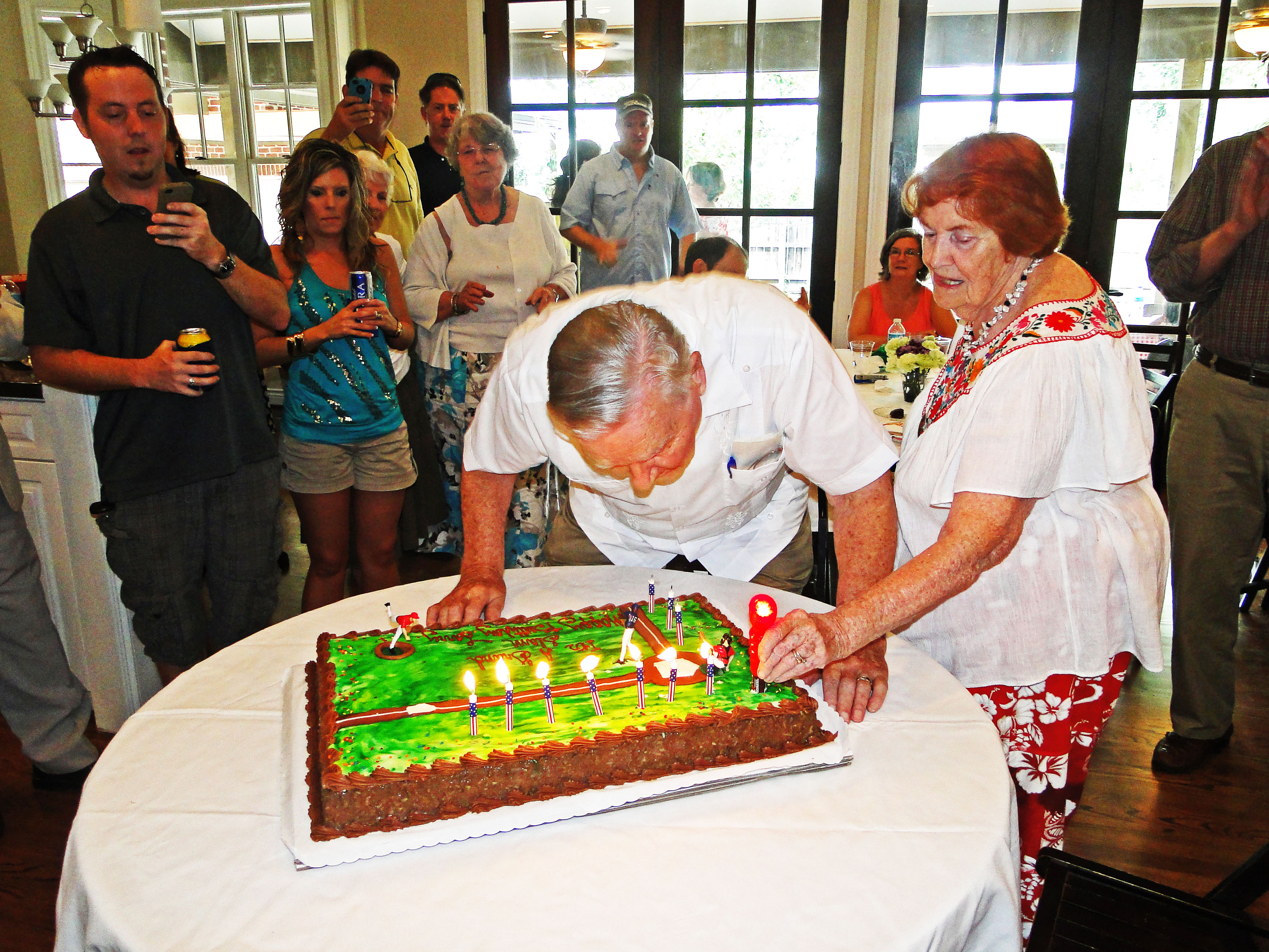 With some help from Kathleen, Larry Miggins blew out the candles on his 87th baseball birthday cake just fine.