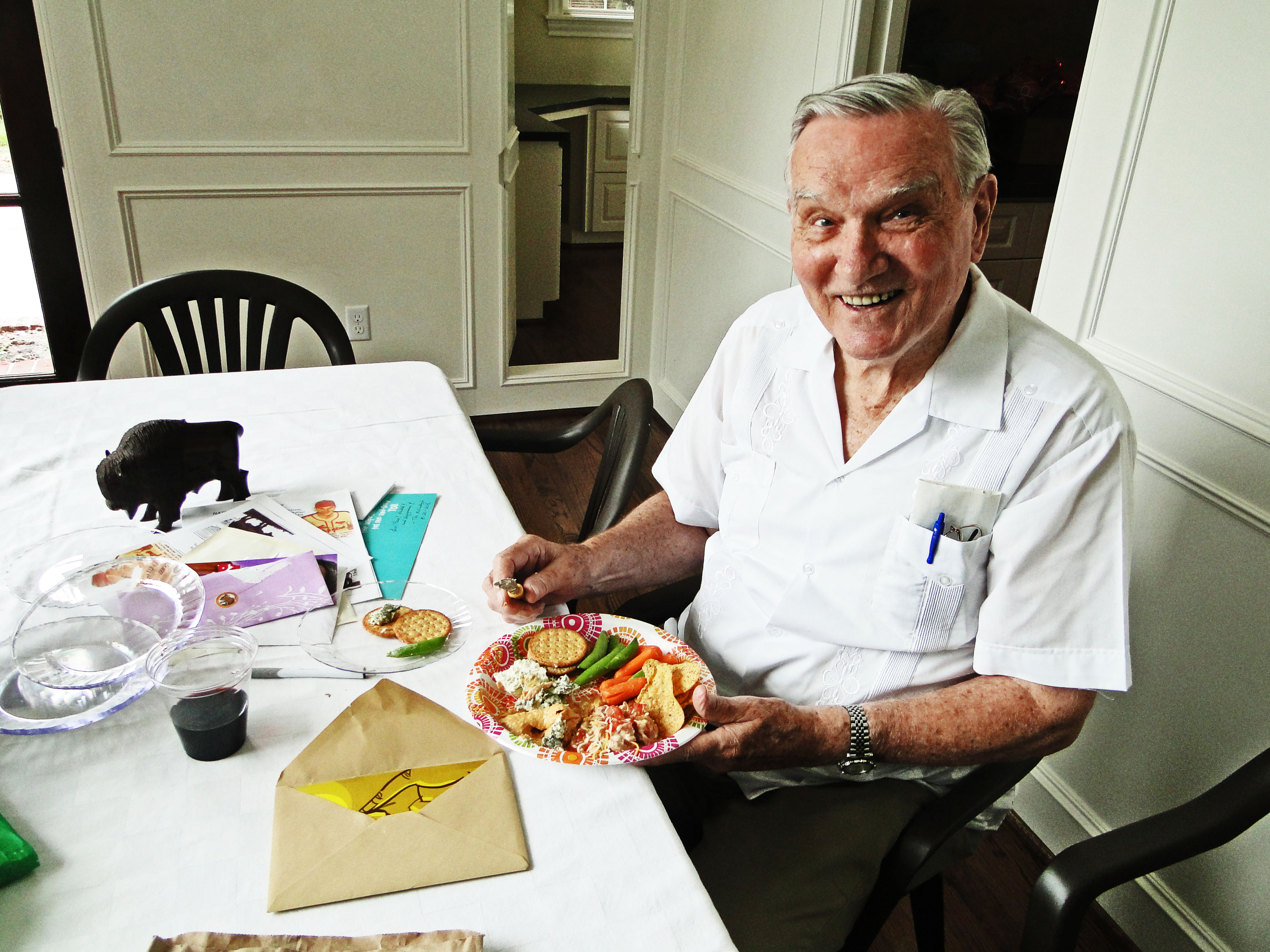 The party for family and friends was held yesterday at the new Houston home of Maureen Swanson and her immediate family. As one of Larry’s daughters, Maureen did things up right and, as with all things Miggins, there was an overflowing of love, laughter, fun, and good times, even theatrics. With the help of another guest, Larry and his lovely wife of nearly 69 years, Kathleen, acted out a side-splitting “Irishman Goes Courting” skit that was the highlight of the day, even if I cannot begin to recreate what you really had to see and hear with your own eyes and ears to fully appreciate.