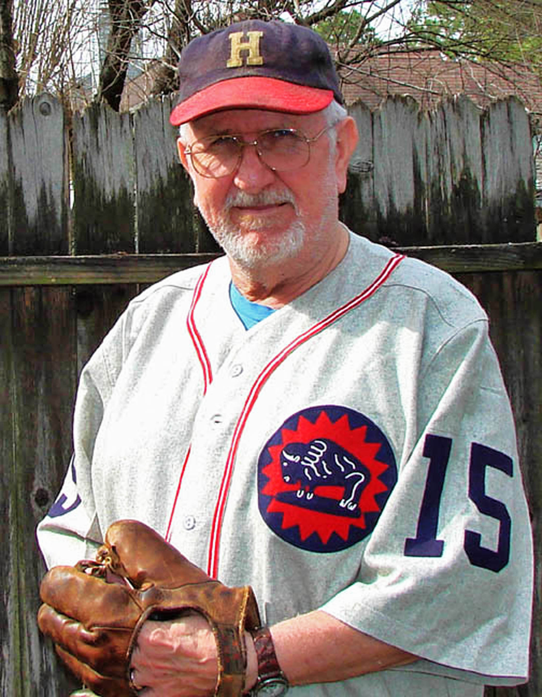 That’s me modeling a 1932 Buffs road uniform. The cap is a 1954 model.