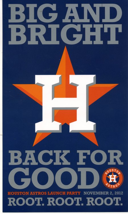 “Thanks too to new Manager Bo Porter and General Manager Jeff Luhnow for your fired-up inspirational look at our near and down-the-road future in the American League. Believe me, Yours Truly, Orbit, when I say: These fans want to believe you as much as you want them to believe you. – Let’s get it done. – I just have one question: Is Chester Charge still around?” – Orbit