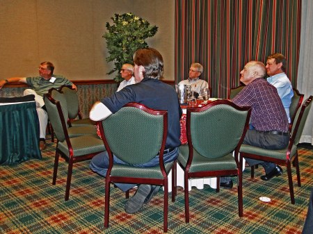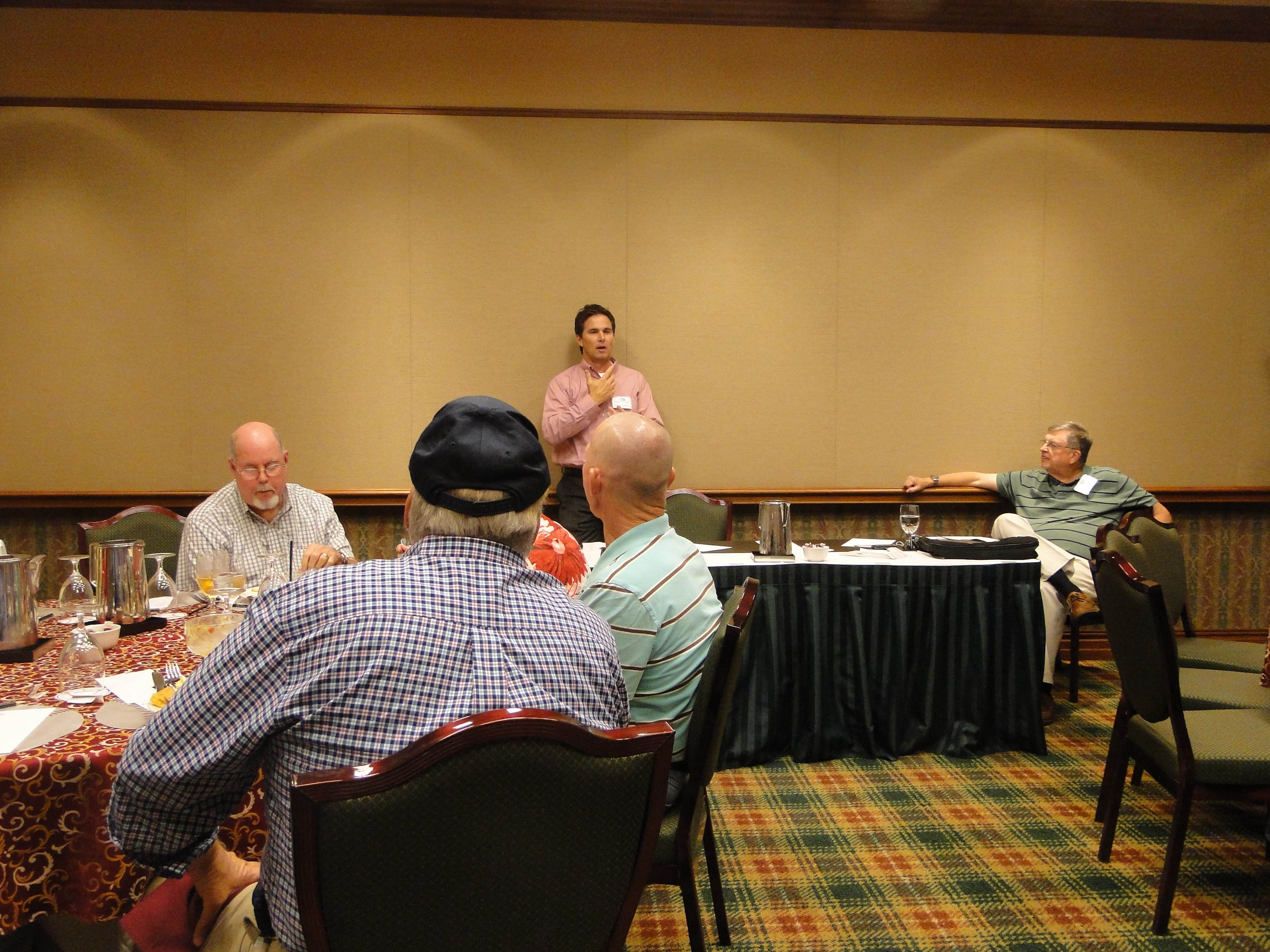 Tony Cavender presented a humorous book report on a large work that detailed some of the funniest things that baseball players do and say to each other, among other things. One of the stories involved some language a player was using to describe a devilish curve ball, but “Gentleman Tony” was having trouble telling the tale because of the vulgarity. When we discussed the dilemma prior to the meeting at dinner. I suggested that Tony simply call it a “mofo curve” because I was sure that most would know what he really meant. Tony ran with that one – and guess what? – Everybody got it. – Thanks, Tony, for a great total review.