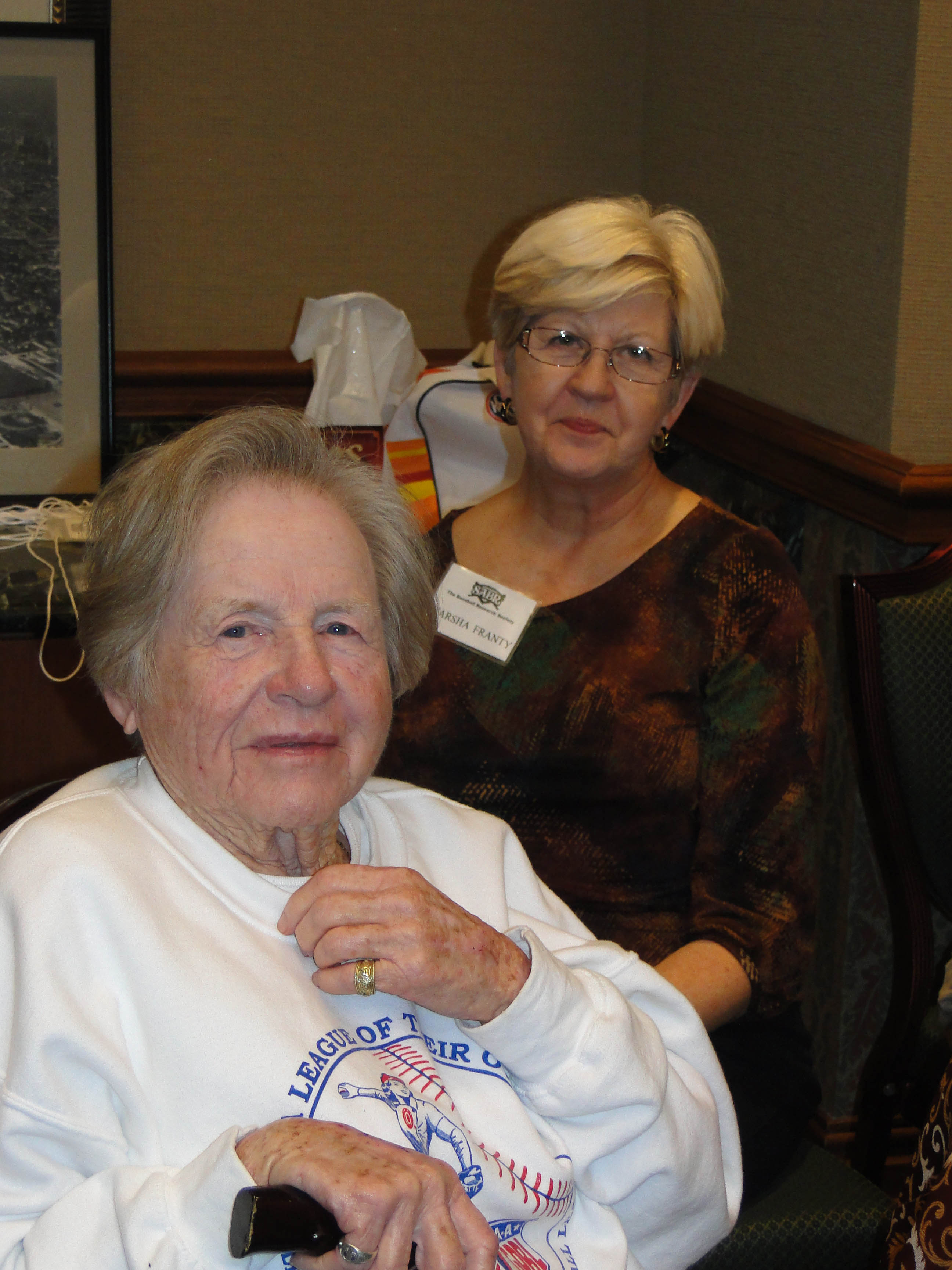 Former All American Girls’ Leaguer Marie “Red” Mahoney is now a new SABR member and was also there last night with new SABR friend Marsha Franty.