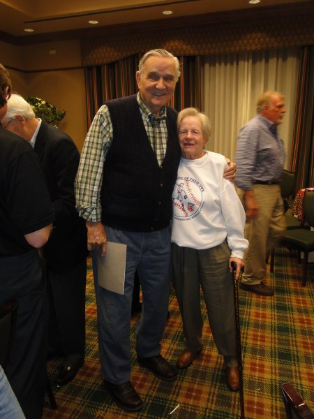 Larry “Irish” Miggins, 87, and Marie “Red” Mahoney, 88 are now our two SABR and Baseball History senior icons. Larry played in Jackie Robinson’s first professional game as a member of organized baseball in 1946. – Marie was a charter member of the famous “League of Their Own” for women that began in the 1940s. Both are deep baseball people – and both are now happy members of the Larry Dierker Chapter. – Join us sometime. Our next meeting is set for 12/10/12. For further details, e-mail Bob Dorrill at BDorrill@aol.com – or call him at 281.361.7874. We would love to have you join us in our non-stop celebration of baseball and rich historical contributions to our culture and country.