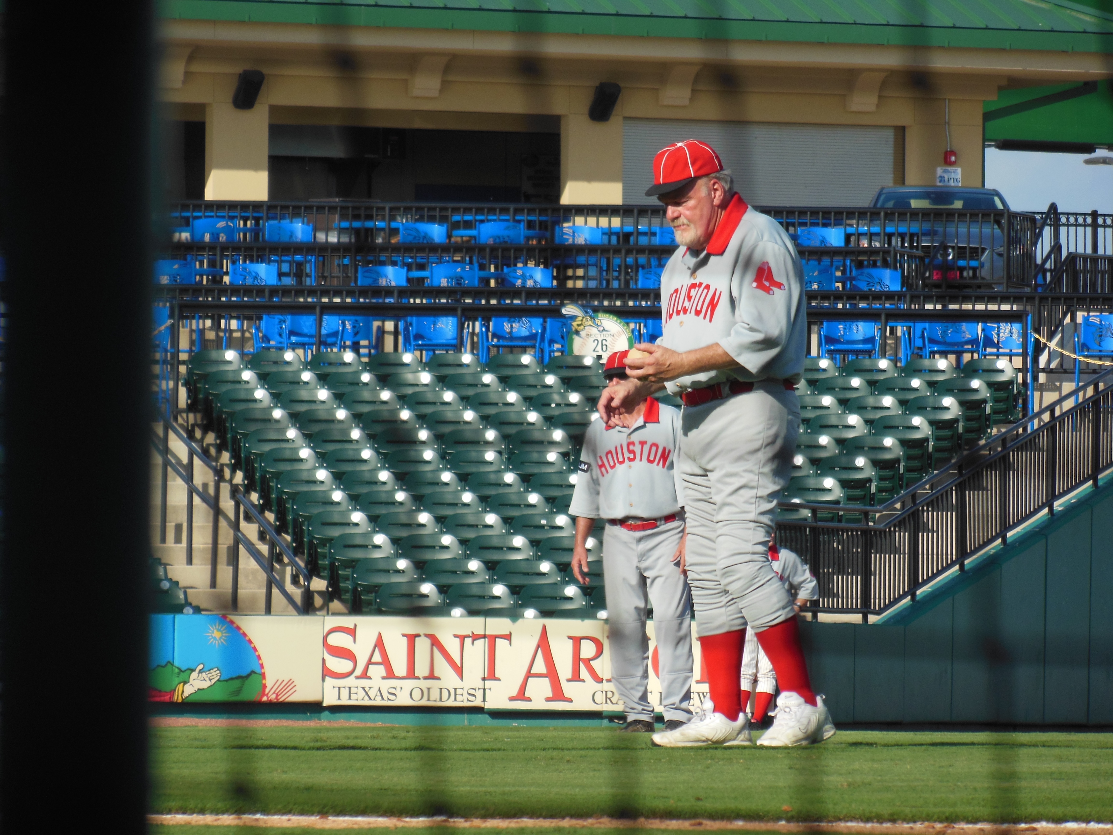 The Houston Babies prevailed by a tally of 9-5 as Robert Blair of the Babies became both the first vintage pitcher to win a game on a professional field in the Houston area and also the oldest player on record to start in such a contest. We do think that the oldest player to pitch and play records were again broken late in the game when elder statesman Mike McCroskey entered the contest in relief of Rapid Robert Blair.