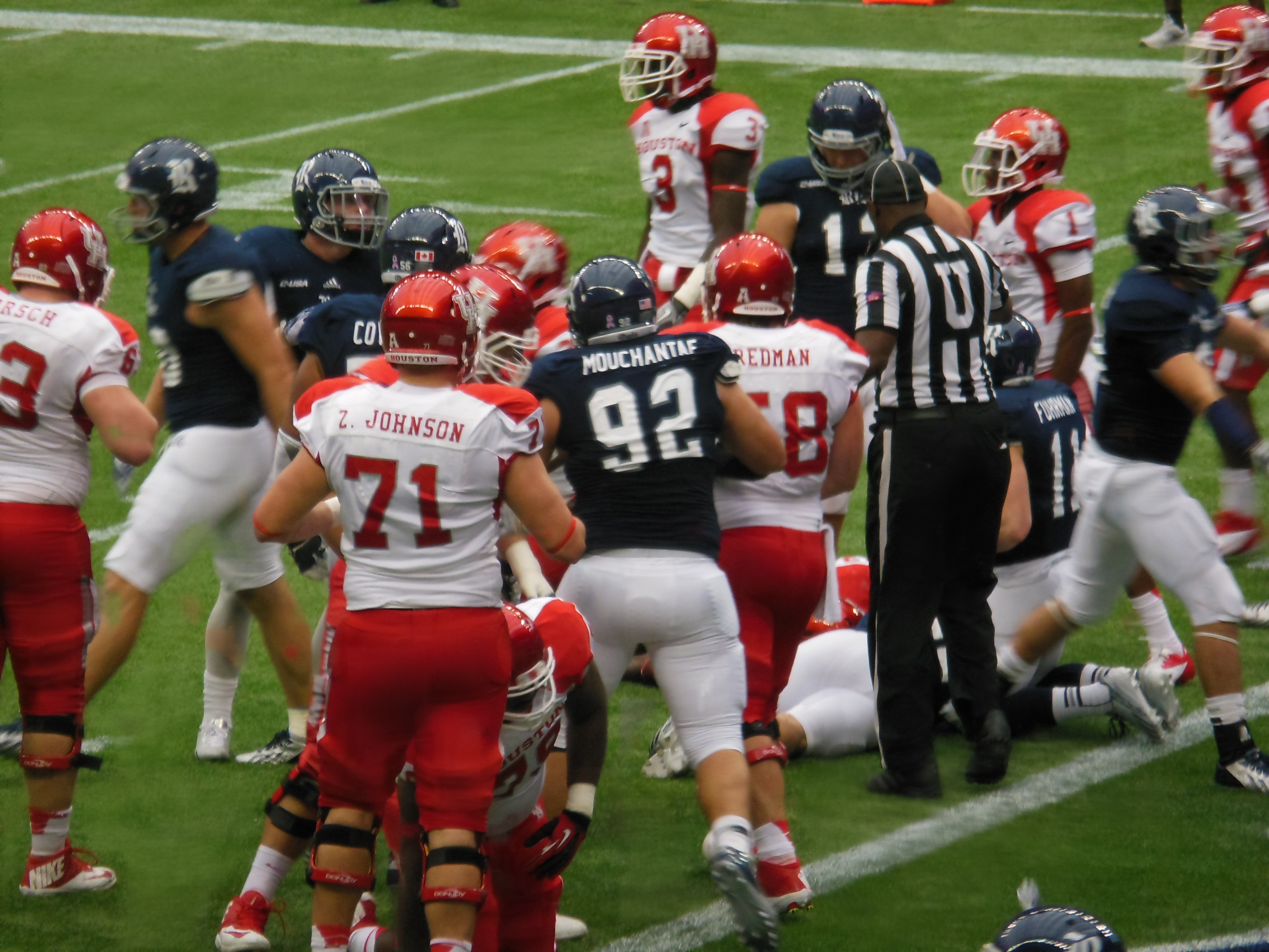 An abortive third down forces a punt. UH gets the ball back after a “three and out” by Rice and UH drives to about the Rice 32 before the drive stalls with about two yards needed for a first down on fourth. Instead of going for it to possibly ice the game against a Rice club with no timeouts remaining, UH Coach Tony Levine elects to try a field goal from the 39.