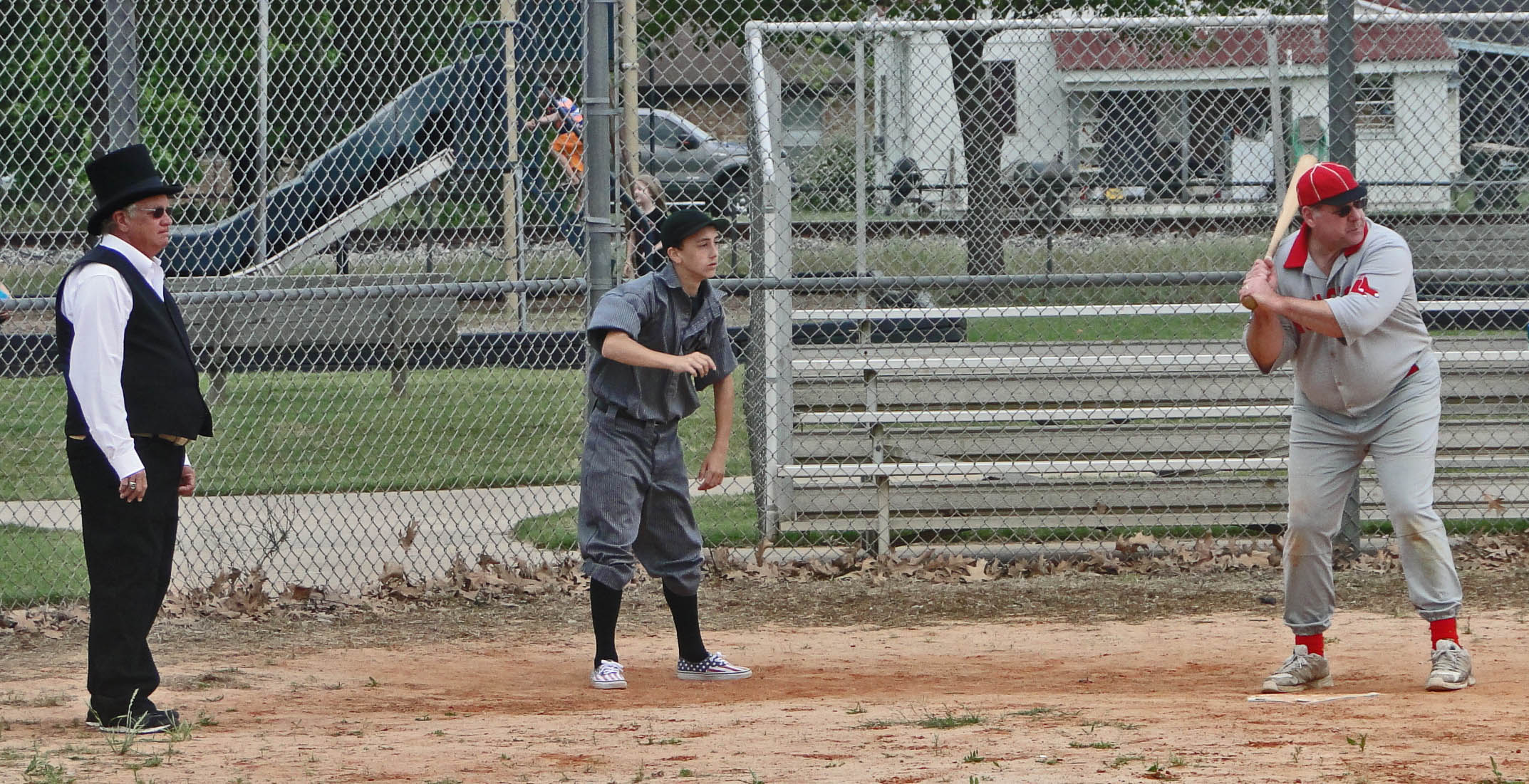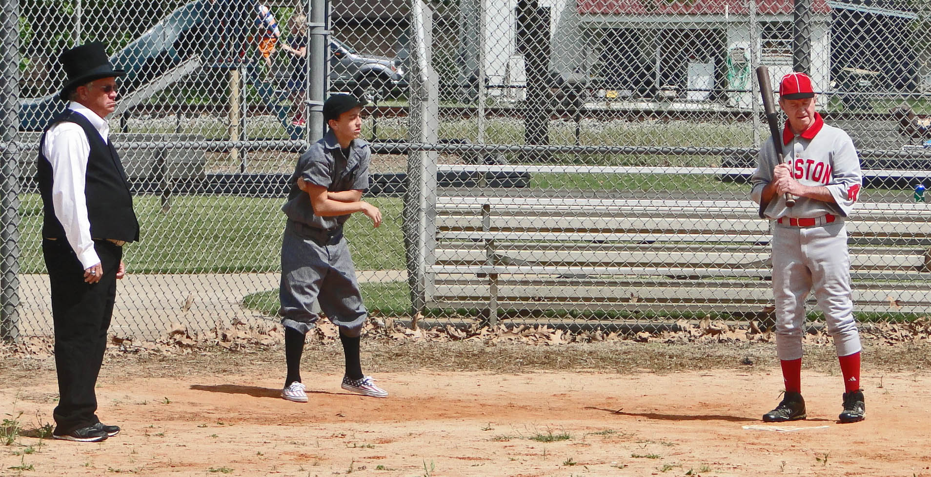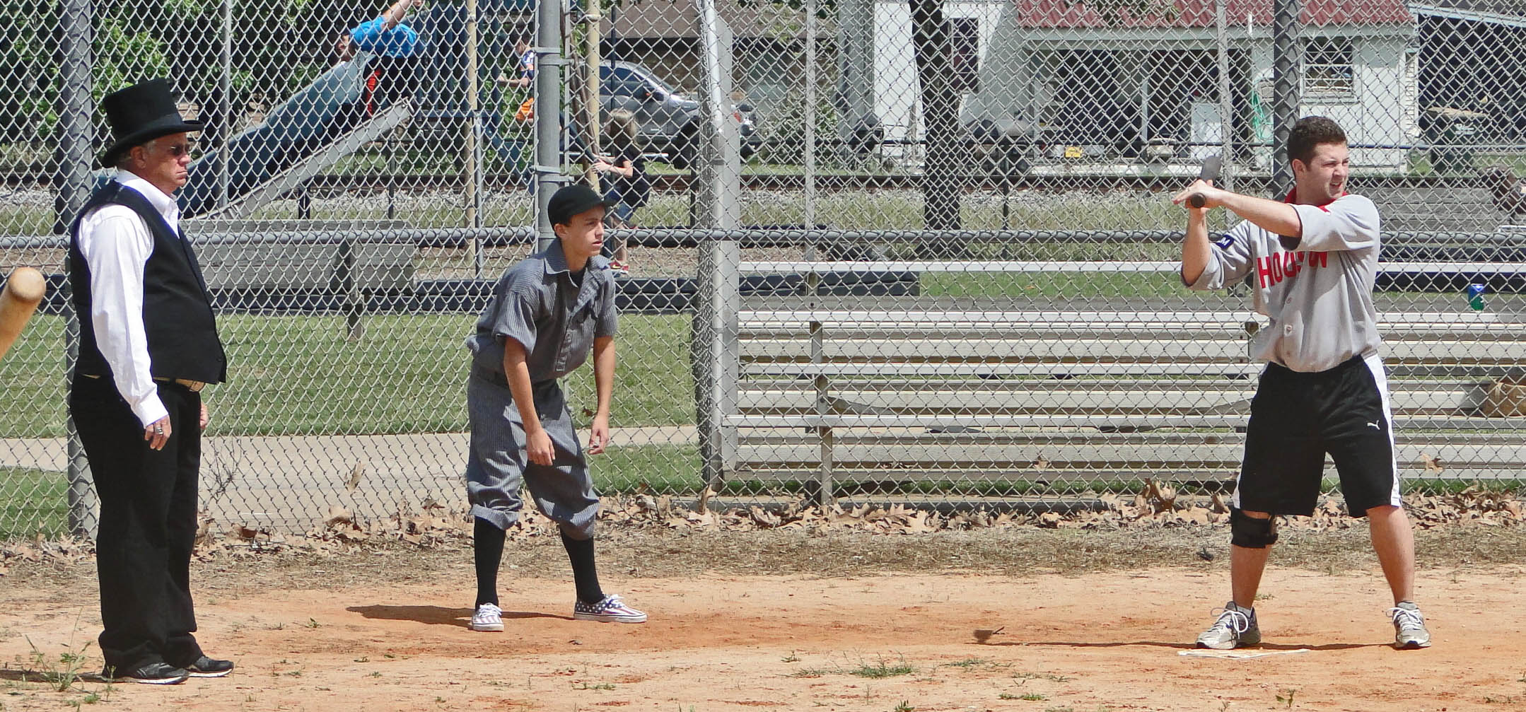 It was another great outing for vintage ball, but sadly, this one was clouded by an injury to the Combine’s left fielder Roy Frankum in Game One. The Babies and the Pecan Park Eagle Press send out their prayers and most positive thoughts too for Roy’s recovery. I saw it happen from our first base dugout and it wasn’t pretty. Roy seemed to make a somersaulting tumble as he tried to catch up with a fly ball. He was instantly stopped and writhing in great pain. The tumble had dislocated his shoulder and, as we later learned, broken a collar bone.