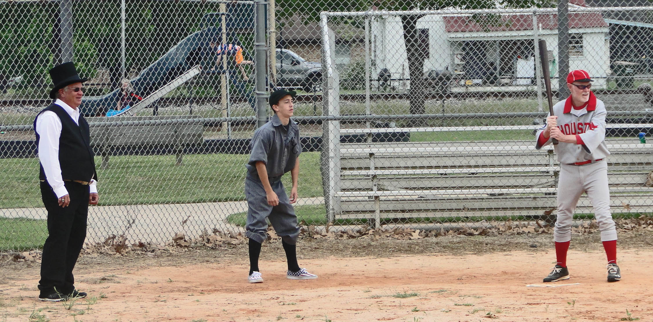 Thanks also to all the people of Sealy who brought their exhibits, music, quilting, bake off cakes and cookies, and still had time to stage a parade. And thanks to Santa Anna from the Texas History military reenactment for stopping off to watch a little vintage baseball on his flight from the Battle of San Jacinto.