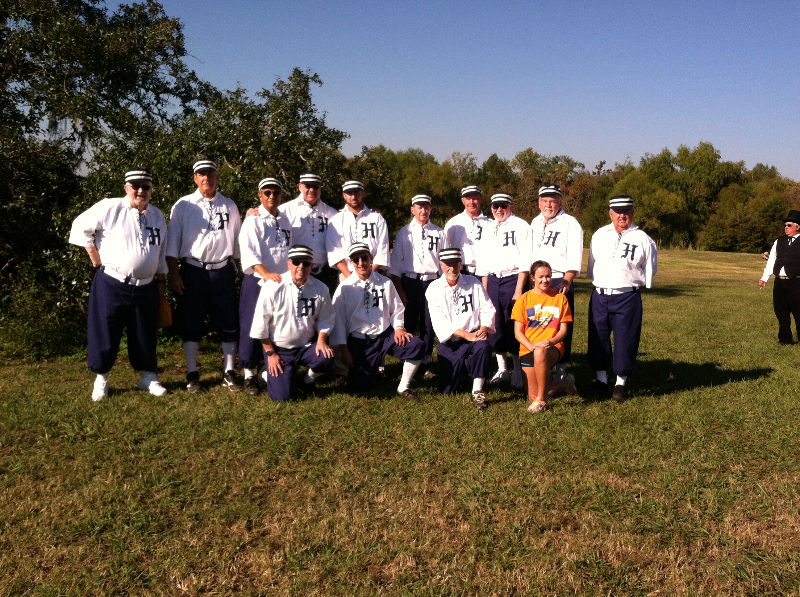 Yesterday, 10.25/14, the Houston Babies proudly took the field at George Ranch for the first time ever in their brand new blue and white vintage baseball uniforms.uniforms. ~ Photo Courtesy of Bill & Jo Hale ~