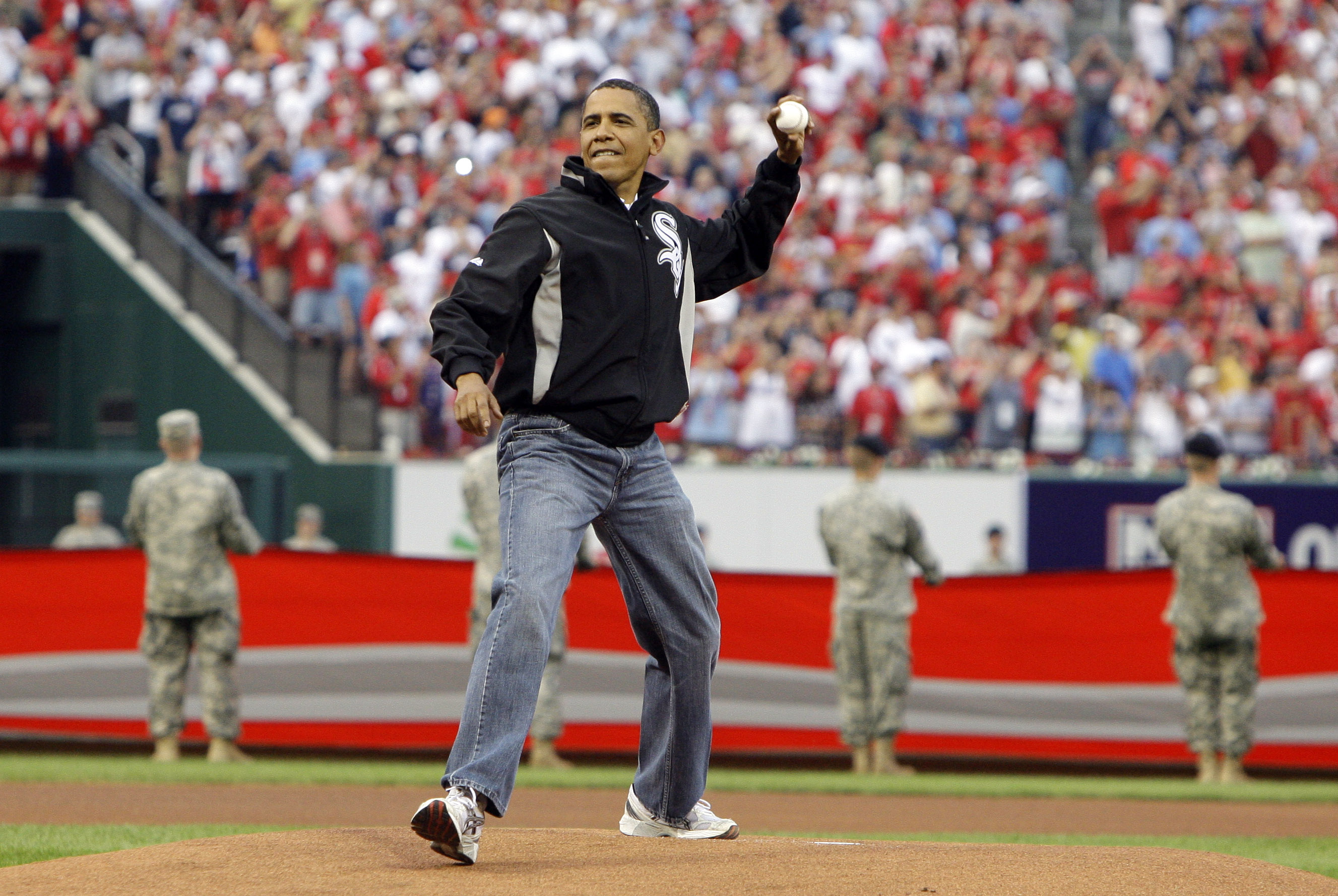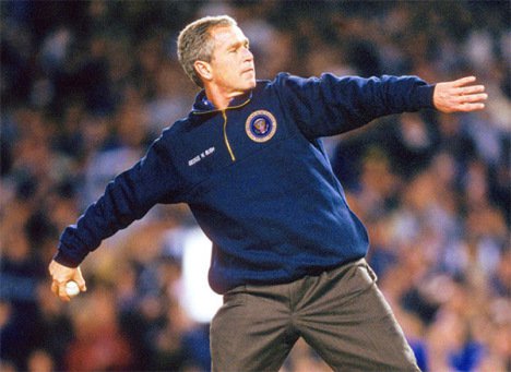 You may have to amend your box score of left-handers and right-handers. In 1950, Harry Truman threw out two balls: one left-handed and one right-handed. President Taft actually played baseball, and I thought when I was a kid that JFK had the best form of any previous President. And both Bushes played baseball and made good throws. What made W’s first pitch at Yankee Stadium during the World Series just after 9/11 impressive was the fact that he threw a strike from the pitcher’s rubber while wearing a bullet-proof vest.