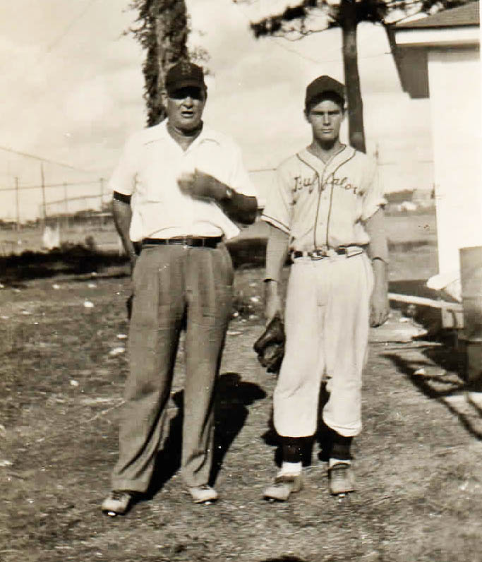 COACH WATTY WATKINS  AND MIKE MULVIHIL, AGE 13 1951 - THE KID WHO PITCHED BP FOR THE HOUSTON BUFFS ~