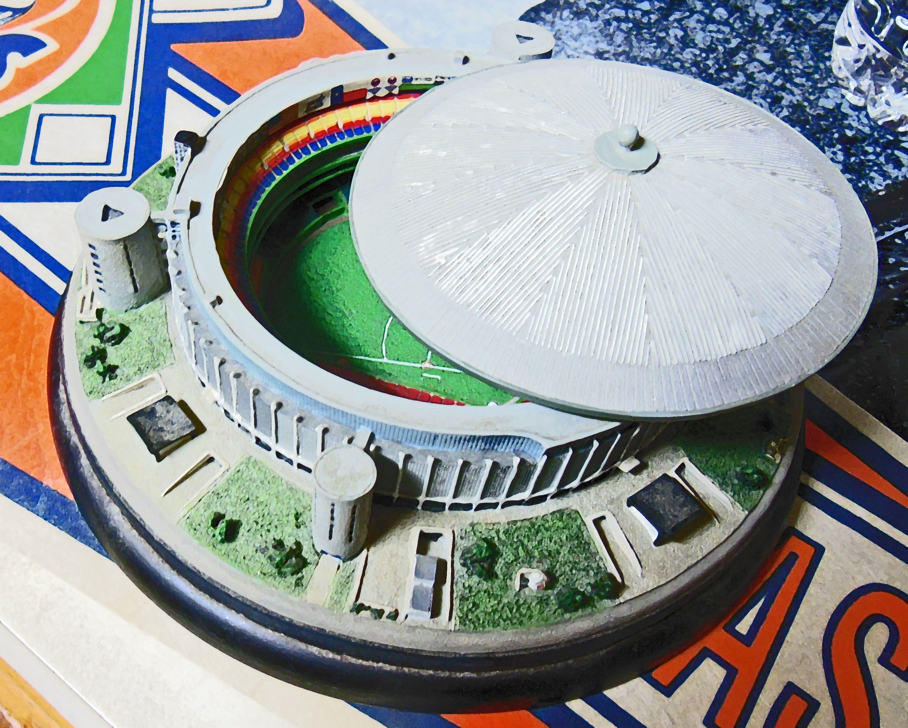 The neat thing about the mini-dome – which ordinarily lives in a safe deposit box, is that its top is removable so that some people may see again – or for the first time – how it looked inside when the Dome was configured for baseball.