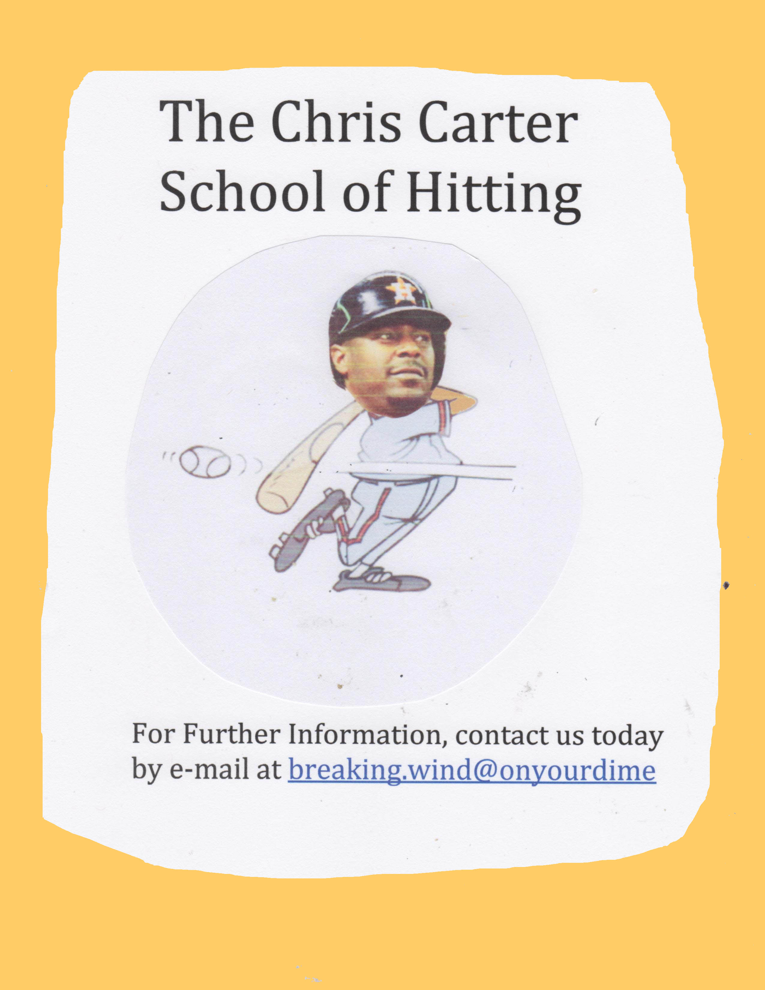 The base running issues I and some others have with you seem to have more to do with focus than anything else, but it does appear that your size and slugging ability also has left you out of some of the fundamental practice on the basics of base running. That doesn’t fly. You got tagged out a couple of nights ago after sliding into 3rd base safely for then breaking contact with the base as you were arising from the dirt. C’mon, Chris! The 3rd baseman had the glove-enclosed ball resting on your back the whole time you were getting up. Of course, you were called out. As soon as you broke contact with the base under those circumstances, you were going to be called out.