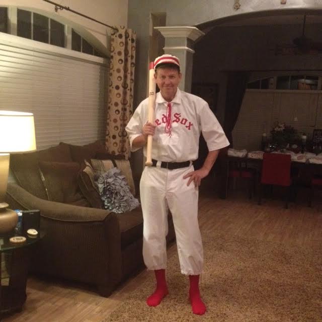 Manager Bob Copus of the Barker Red Sox models his club’s nifty looking 19th century uniform. All four of our clubs dress for the vintage games as though they just stepped out of a time machine.
