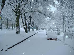 Away from the cold and the snow blown in drifts.