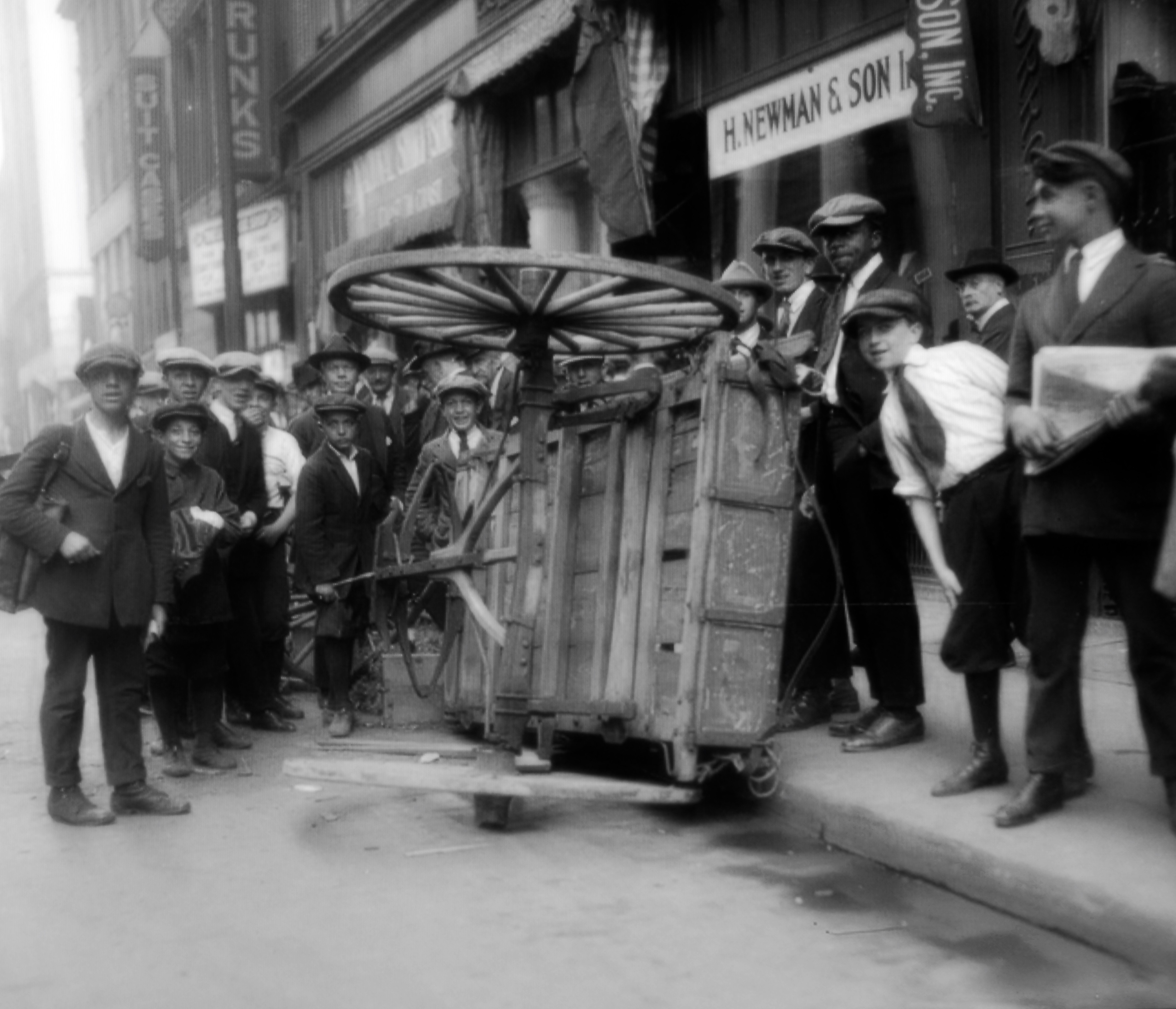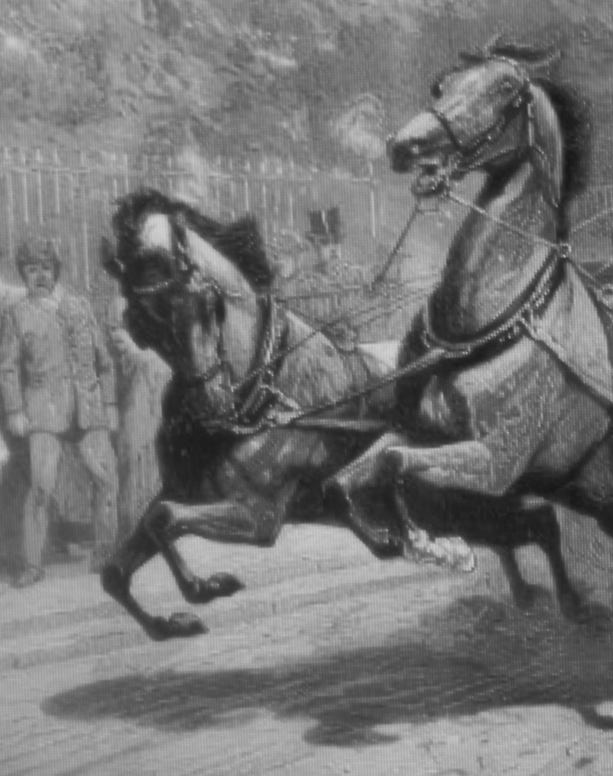 A wagon carrying 2 women and a boy was left by the curb as the frightened horses pulling it broke loose, raced through a china shop, and then came out through the door on a mad dash to the canal, where they both drowned.