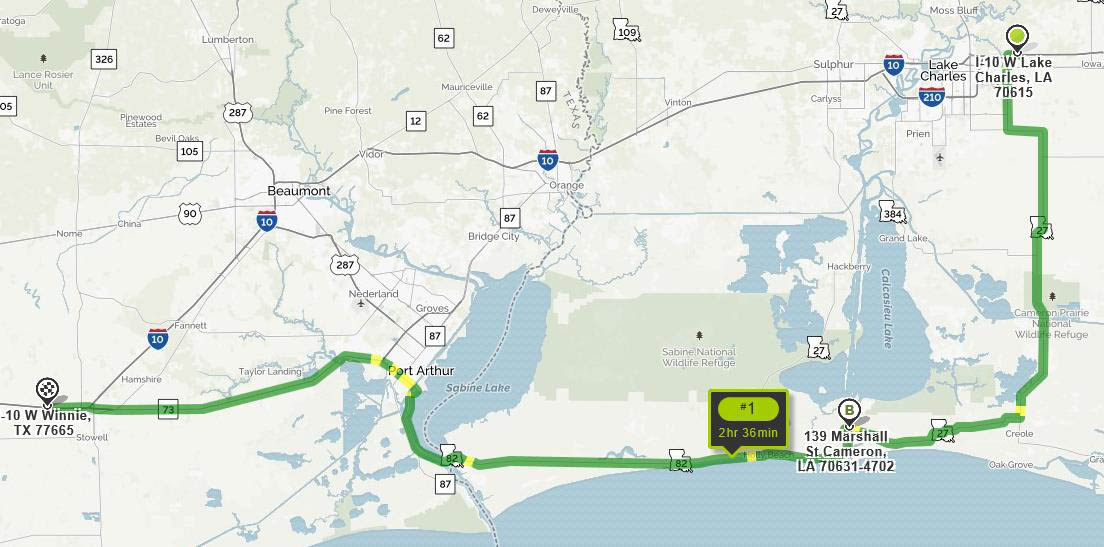 We closed up the rent house and left Kissimmee Thursday morning, early enough that we could make Houston without having to stop overnight. The only problem on the return trip was that I-10 at the Texas-Louisiana border was closed due to the flooding I mentioned previously. Rather than take the official detour through Shreveport, we headed south from Lake Charles to Cameron and re-entered Texas at Port Arthur.