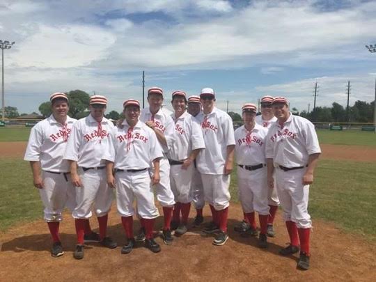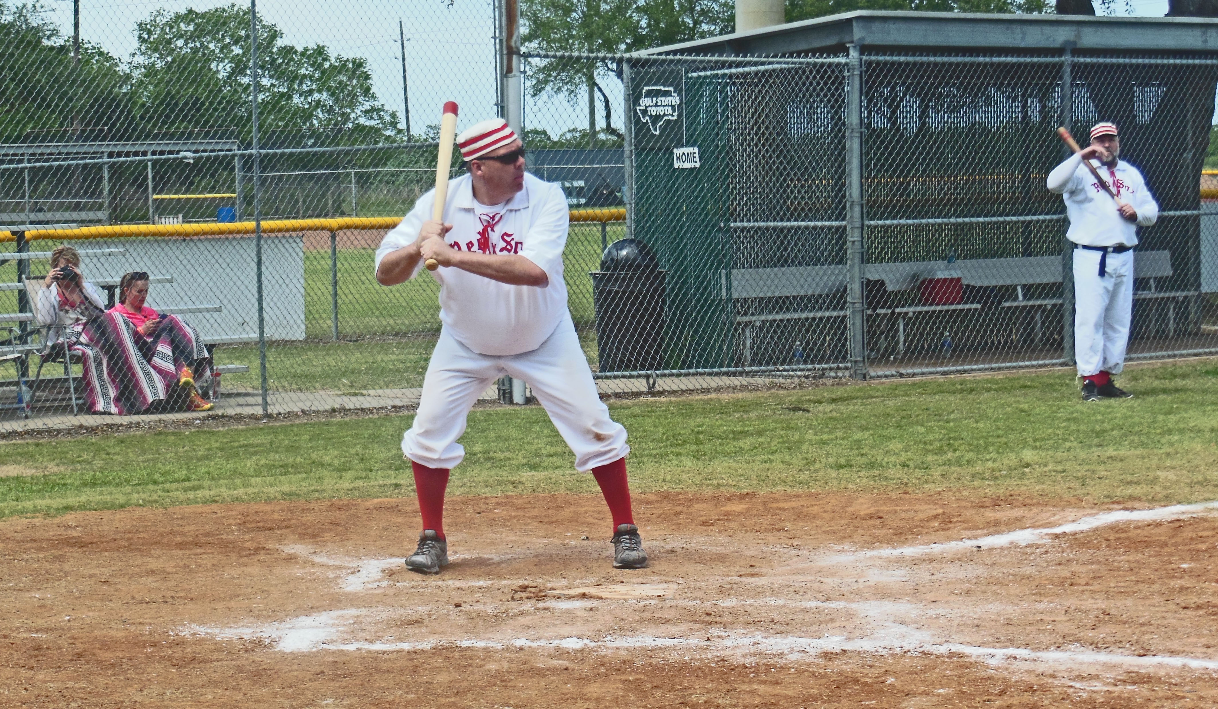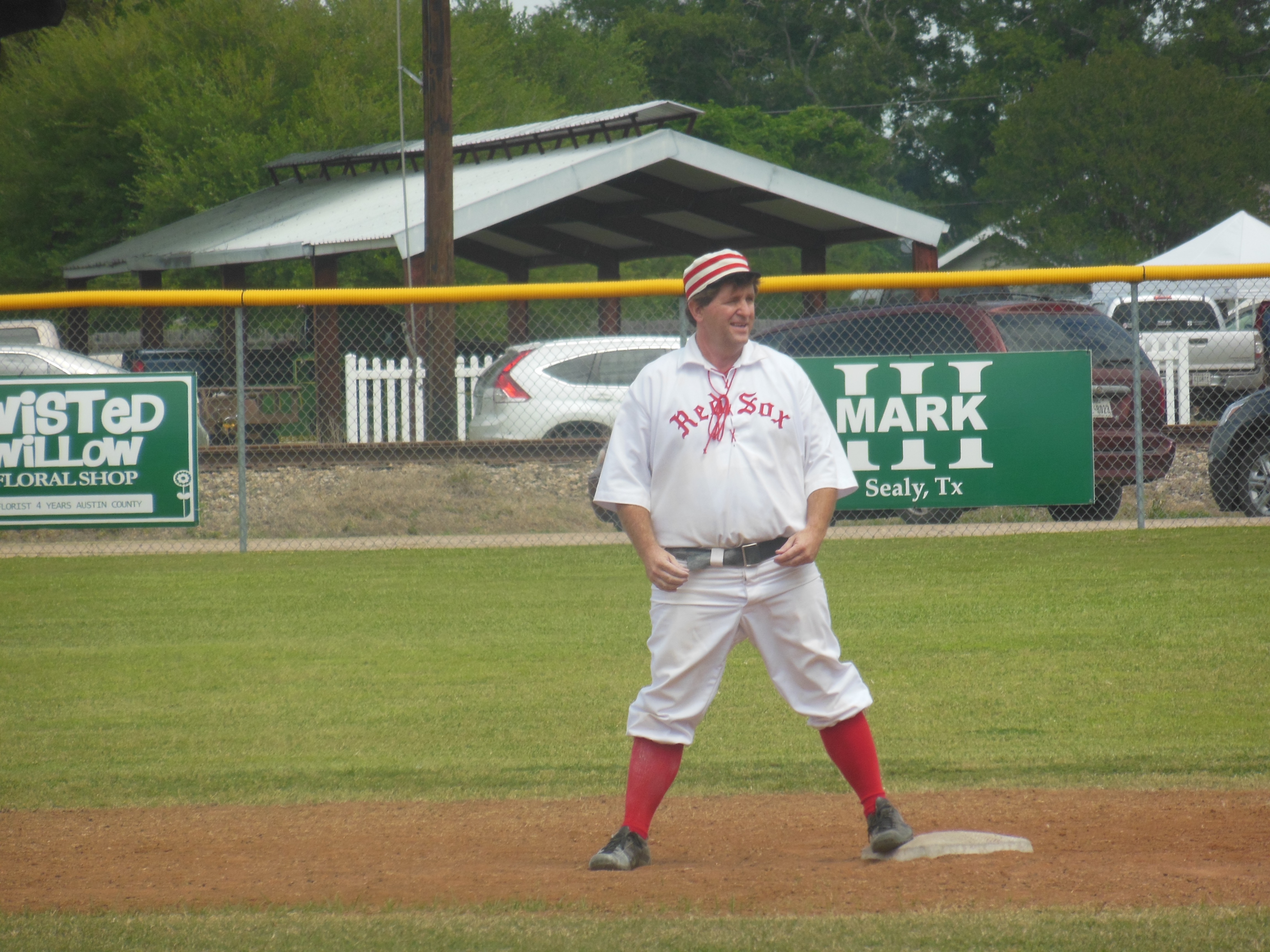 A good time was had by all who ventured fifty miles west of Houston today to the Sealy, Texas Spring Festival and Vintage Baseball Games. The Houston Babies and the Barker Red Sox made the trip this year to enjoy the day and to introduce the vintage game to the new Sealy club. We don’t know if they have an official name, as of yet, but one of their players was wearing a Kansas City Royals cap. We found out as the day wore on that the Sealy group were all members of the local Knights of Columbus chapter. That was the easy part. In lieu of vintage uniforms, the Sealy club all wore modernly styled Knights of Columbus tee shirts that will work fine until their 19th century style uniforms arrive.