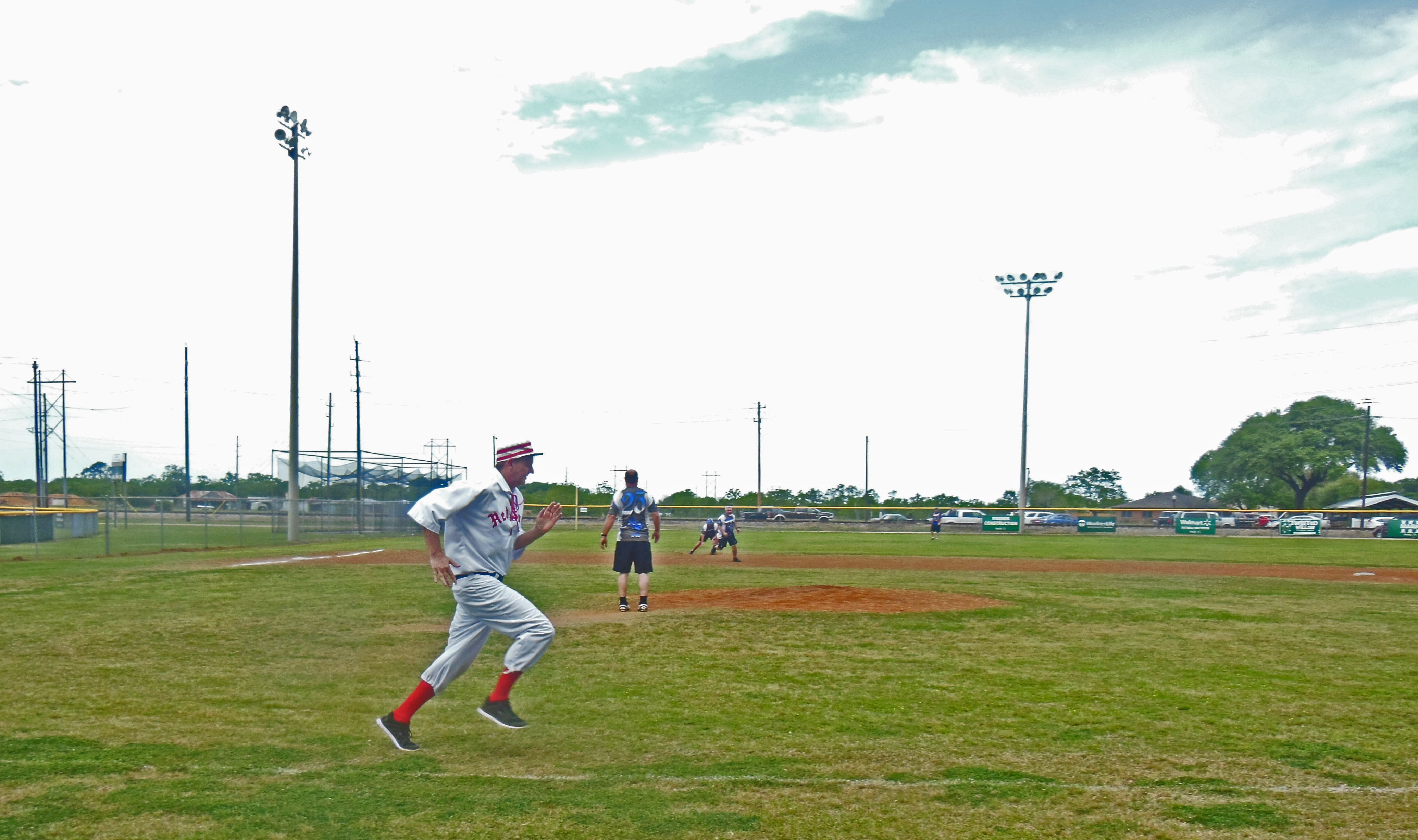 The day could not have been better, weather wise. Fifty miles west of Houston, we picked up the edge of a mild cool front that blew through our shaded dugout at the nicely manicured and fenced Sealy ballpark. The breeze felt good, but never chilled. And the winds on high provided us with a moving picture of various textured gray clouds that kept breaking into finger-lake skies of blue on the eastern horizon.
