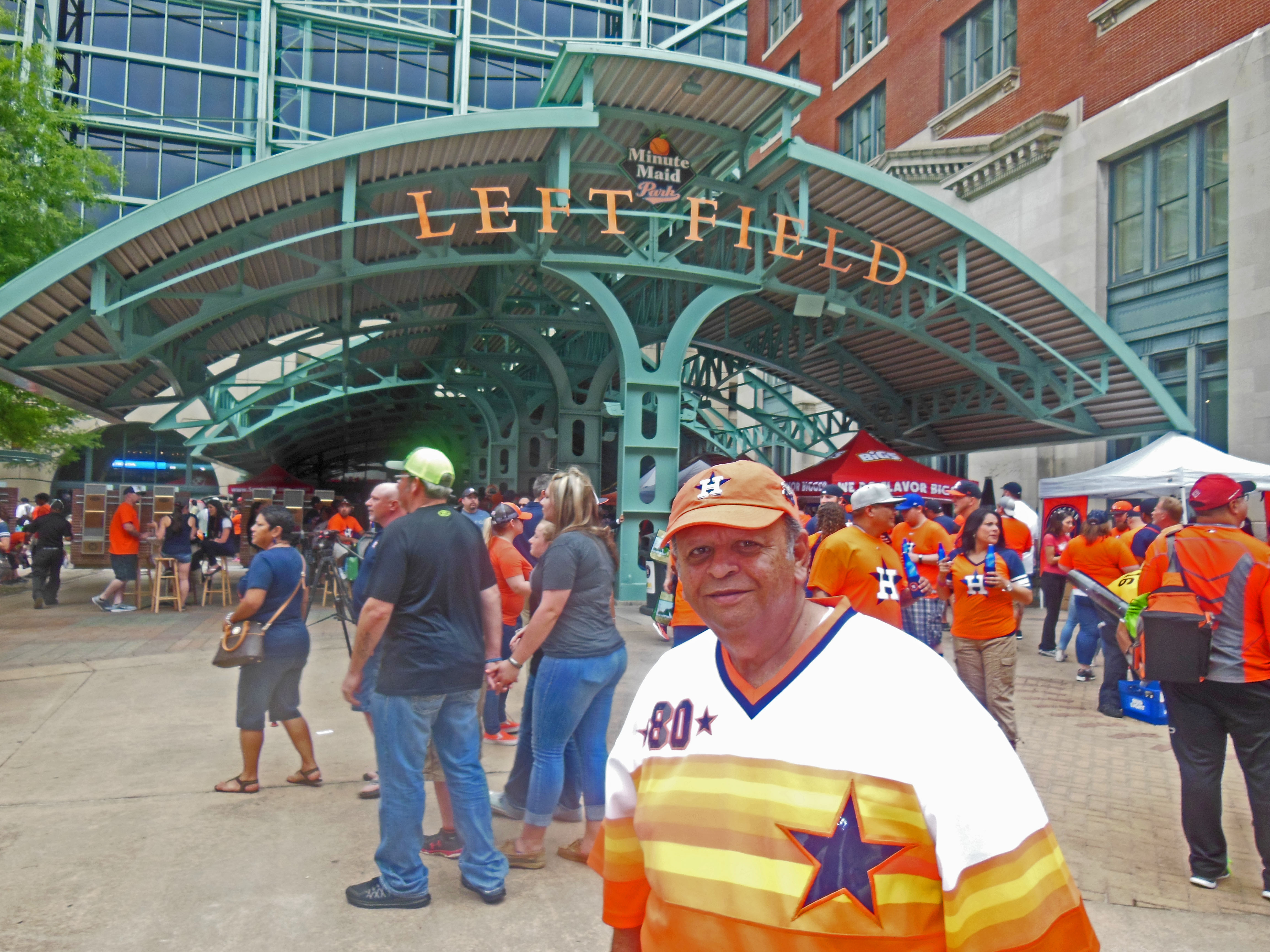 At the Astros street festival, we finally met Valentin Jalomo, that handle bar mustache guy who’s been standing in the open space arch behind the Crawford Boxes since his days as a Carlos Lee fan. Carlos Lee is now gone, of course, but Valentin Jalomo is still with us as a friendly, gentle, but avid Astros fan. We enjoyed our casual moments with him.