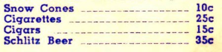That’s Joe D. on the right wall behind the concession stand prices feature. He’s pushing Chesterfield as his milder choice in cigarettes.