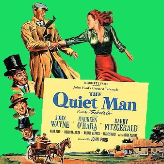 Was the movie “The Quiet Man” really important to Larry and Kathleen back in their younger days? After all, it was only the story of J0hn Wayne as a 6’4″ Irish-American male athlete who meets up with Maureen O’Hara, the love of his life character, on a trip back to to the old country. Wayne’s character is quickly and duly smitten by this dazzling young redheaded Irish beauty of great mind and character.