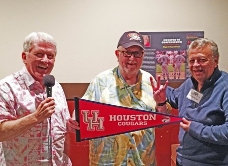 - Greg Lucas Reported on his new book, “Houston to Cooperstown: The Houston Astros’ Biggio & Bagwell Years”. Greg spoke for about twenty minutes. Beyond Larry Dierker’s “It Ain’t Brain Surgery”, followed by “Toy Cannon”, the biography that Jimmy Wynn and I, Bill McCurdy, did of his life and career for McFarland Company in 2010 and then, “Still Throwing Heat”, the book that J.R. Richards did on his life and career with Lew Freedman in 2015, Lucas’s new work on Biggio/Bagwell is only the fourth book in print that focuses on individual Astro players. From what Greg shared, and what we also know of his writing skills, look for this latest book to be well worth the $25 purchase price at both Barnes & Noble, nationwide, and, of course, Amazon.com.