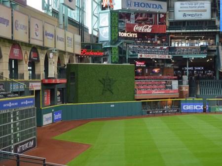 Because the vine and leaf inclined “H” Wall symbolically well represents the horticultural, heroic, and Houston climate of the new center field area, our vote supports the idea that it’s already named itself. Unless the fan masses come up with a more naturally popular title, let us consider calling  it “The H Wall” – for now and evermore.