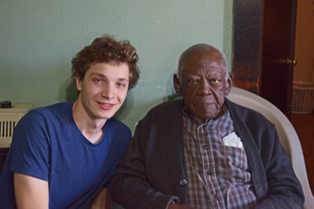 Cam Perron with 104-year-old former Negro Leaguer Bill Stewart, the oldest known living professional baseball player.